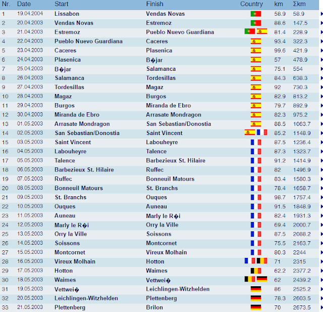 «The 2003 Trans Europe Foot Race was organized by Ingo Schultze. It ran from Lisbon to Moscow in 64 days and covered approximately 5,100 kilometres (3,200 mi). Out of 44 starters, there were 22 finishers including one wheelchair athlete with Mariko Sakamoto the only woman to finish. The event was won by Robert Wimmer from Germany with a running time of 480 hours and 29 minutes